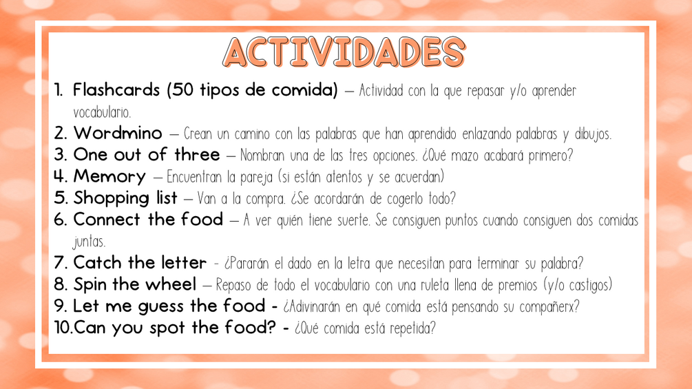 Flashcards (50 tipos de comida) – Actividad con la que repasar y/o aprender vocabulario.