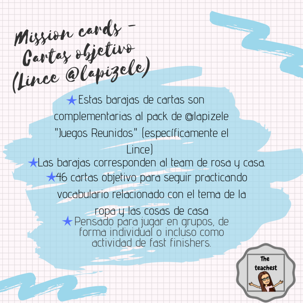 Mission cards / Cartas objetivo (Juego complementario del lince de @lapizele) - Casa y ropa